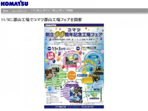コマツは11月5日に『コマツ郡山工場フェア』を開催